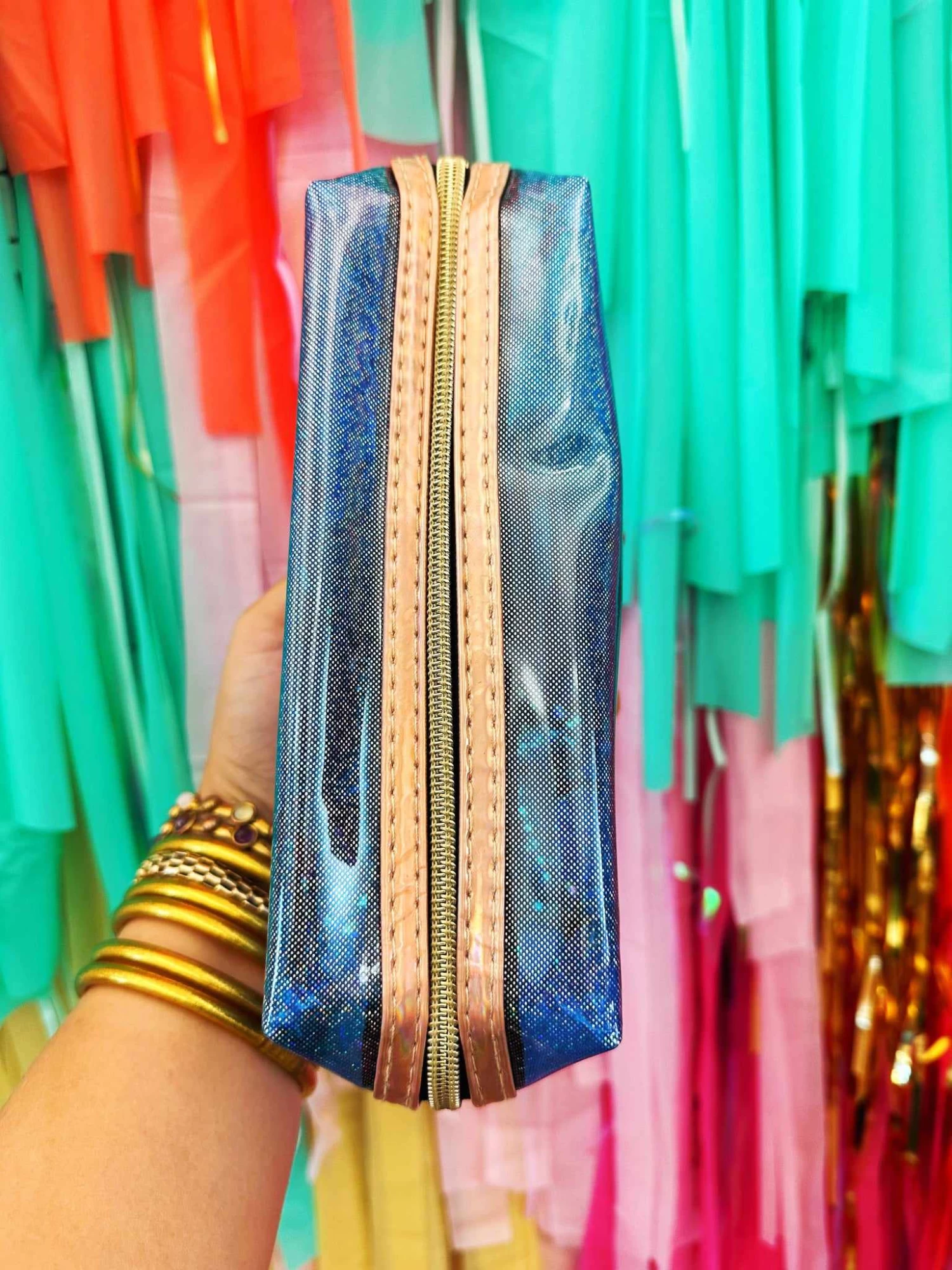 The “Carly” Cosmetic Bag is perfect for your on the go makeup or any small items you want to keep in a certain pouch! This bag features a zip closure and has a detachable wristlet for easy carry. Plastic material for an easy cleanup! Perfect size to throw in your purse!