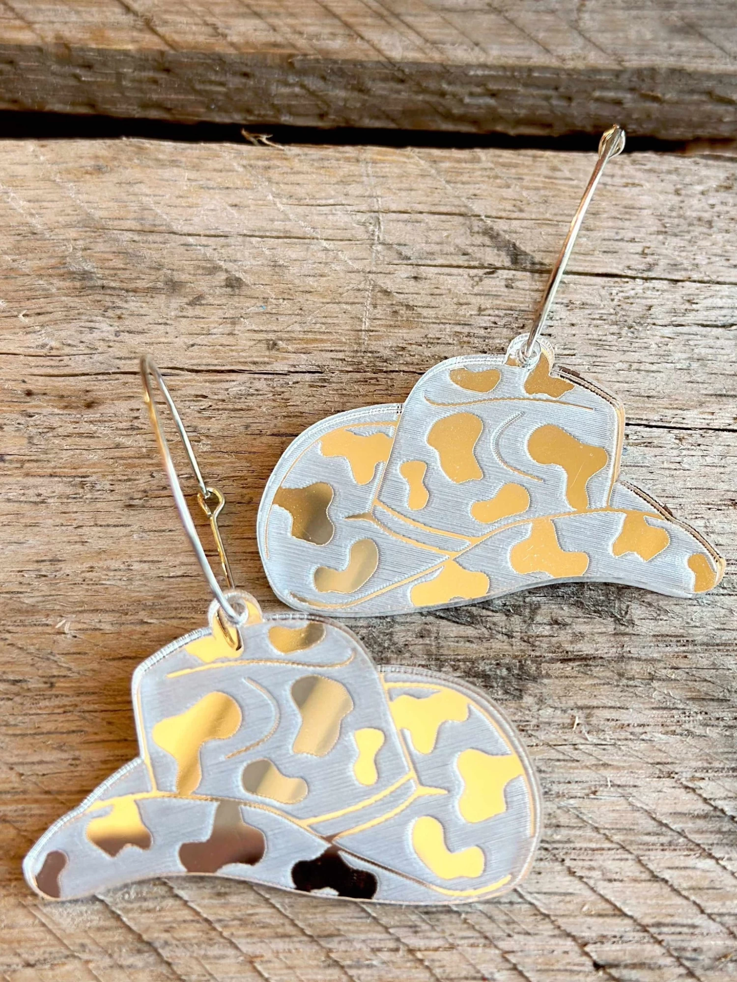 Stomp into style with these awesome Cow Print Cowgirl Hat Earrings! Inspired by the wild west, these cowgirl-vibin’ accessories will give you a wild look that no one can ignore! (Yee-haw!).