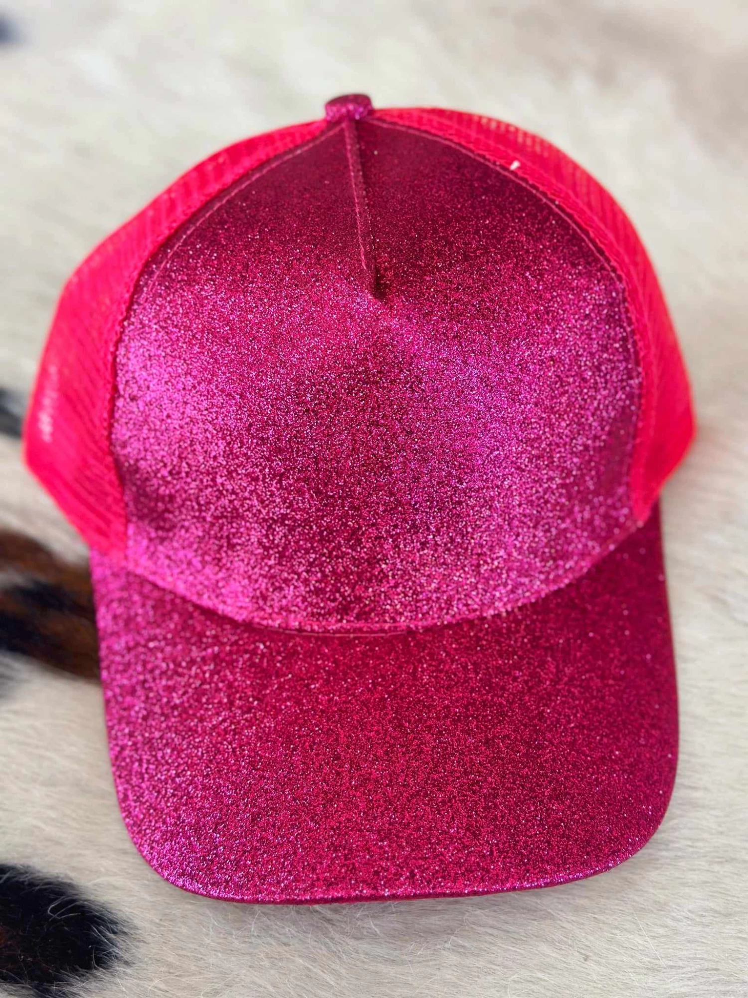 Make a statement with our Glitter Vibes Hat. Whether you’re trying to keep the sun out of your eyes or make an impact, this adjustable hat with its dazzling hot pink glitter is sure to make a splash! The back also features a spot for your ponytail, making this simple but sparkly accessory an #instaworthy must-have! 👑