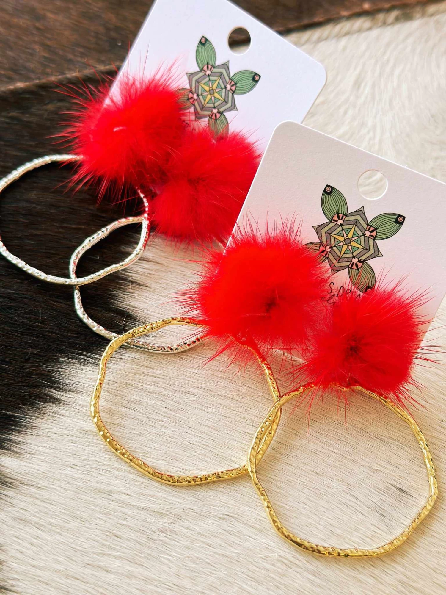 Get your shine on with these sassy Hoop N Holler Gold Earrings! With a classic round hoop style, gold plating and a funky red puff ball, these earrings are sure to give you all the feels while adding the perfect pop of color to any outfit. Lightweight enough to keep you rockin’ all night – now go forth and holler!