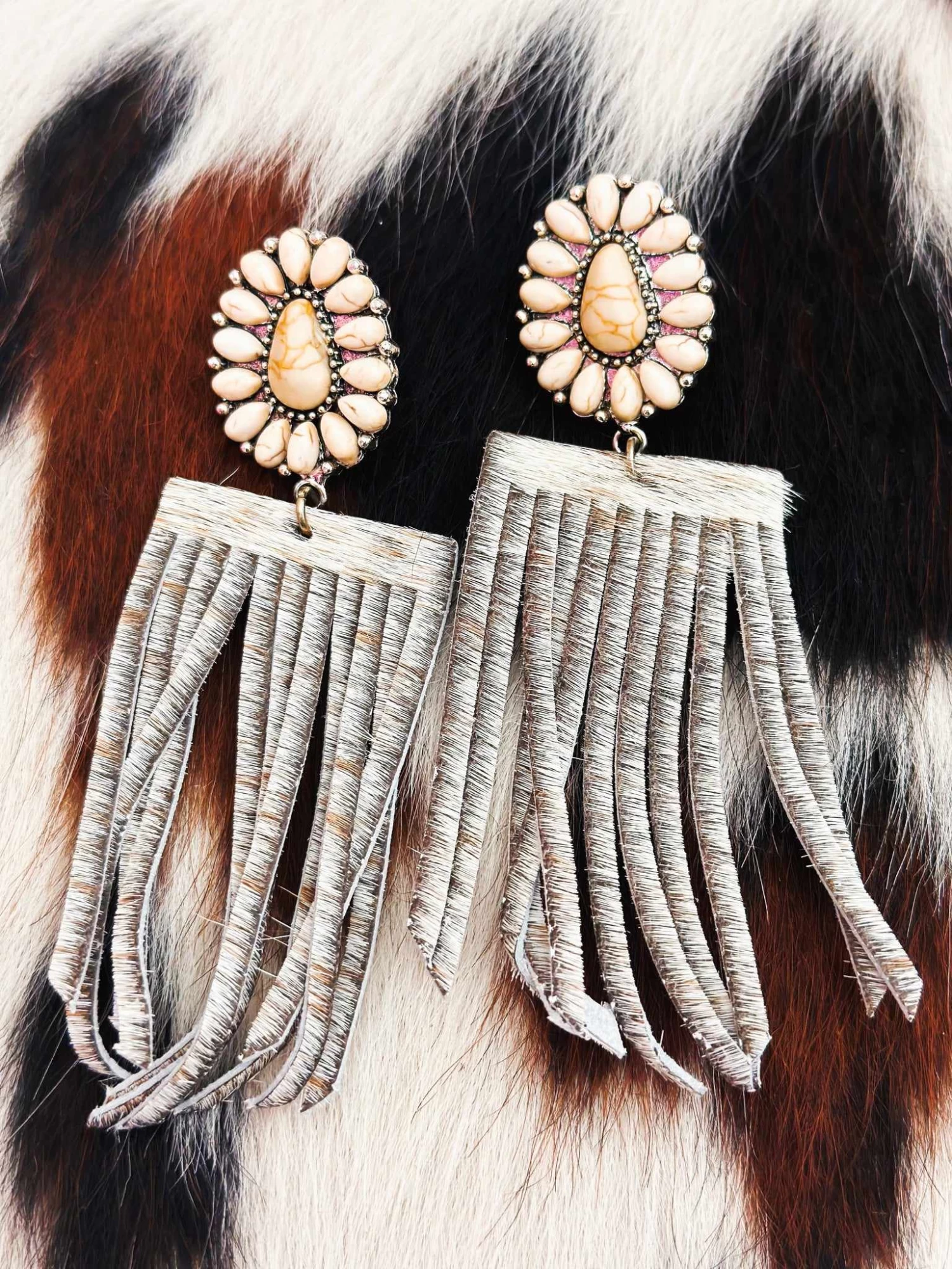 I’ll Be Your Ranch Hand Concho Cowhide Earrings