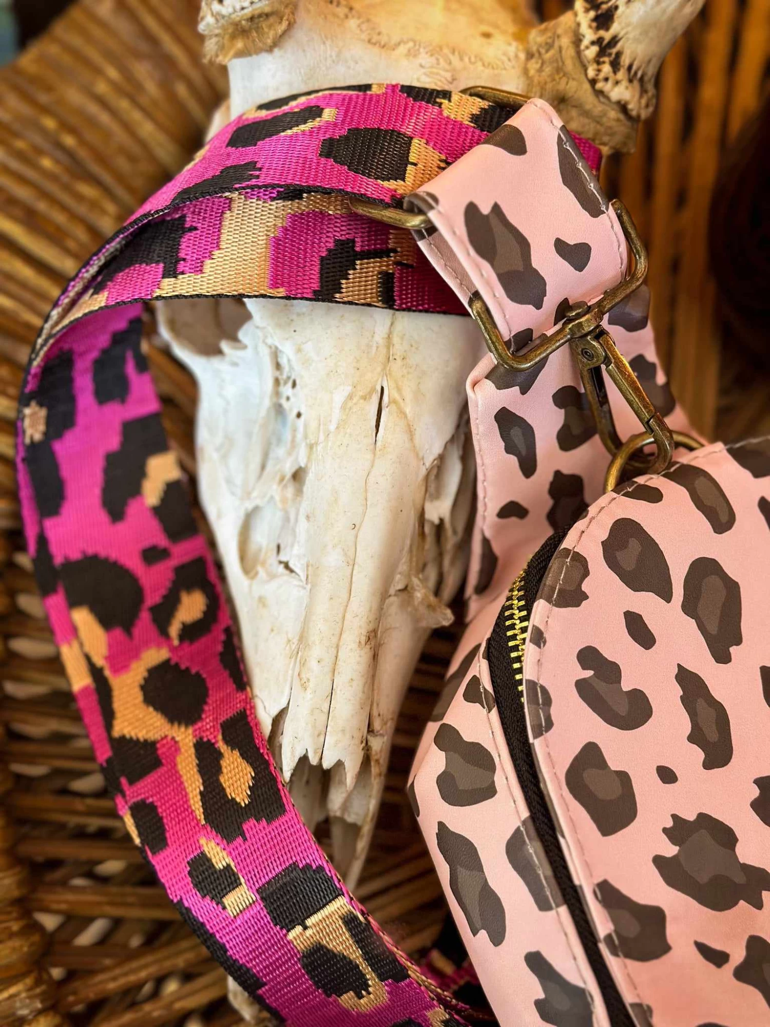 This sling backpack purse is perfect for carrying your essentials when you’re on the go! On occasions when carrying a purse or a tote is inconvenient these stylish sling backpacks can carry everything you need! Featuring one large zippered pocket and a snap-closure slot for cards or cash. The bag itself is leopard print faux leather with a wide beautifully embroidered hot pink Leopard print strap for comfort and style!