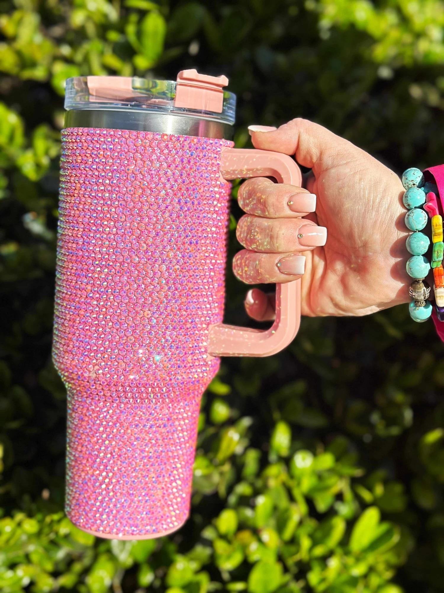 Light Pink Rhinestone Stainless Steel Tumbler 40oz
